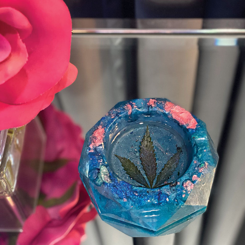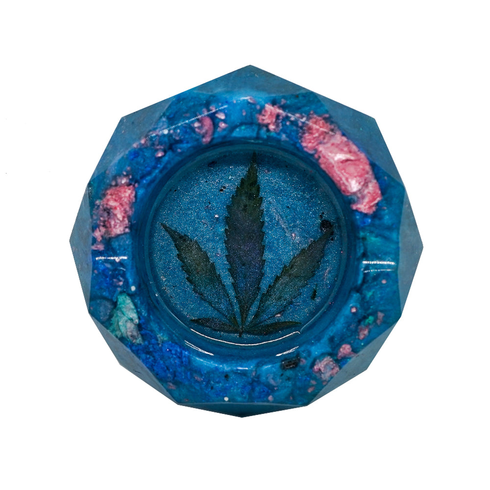I dried and dusted the leaf inlay with mica powders so it has a nice little shininess to it. One of my best friends grew this leaf with love and a lot of determination so theres a lot of good vibes in this crystal creation.